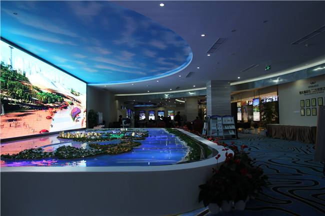 利用多通道图画交融技能、三维立体空间后台处理系统等技术和设别。可充沛展现城市与项目计划、区位特色等信息。在弧幕或直幕上投射VR虚拟现实印象内容以配合实体沙盘体现,供给更直观的三维体现作用。