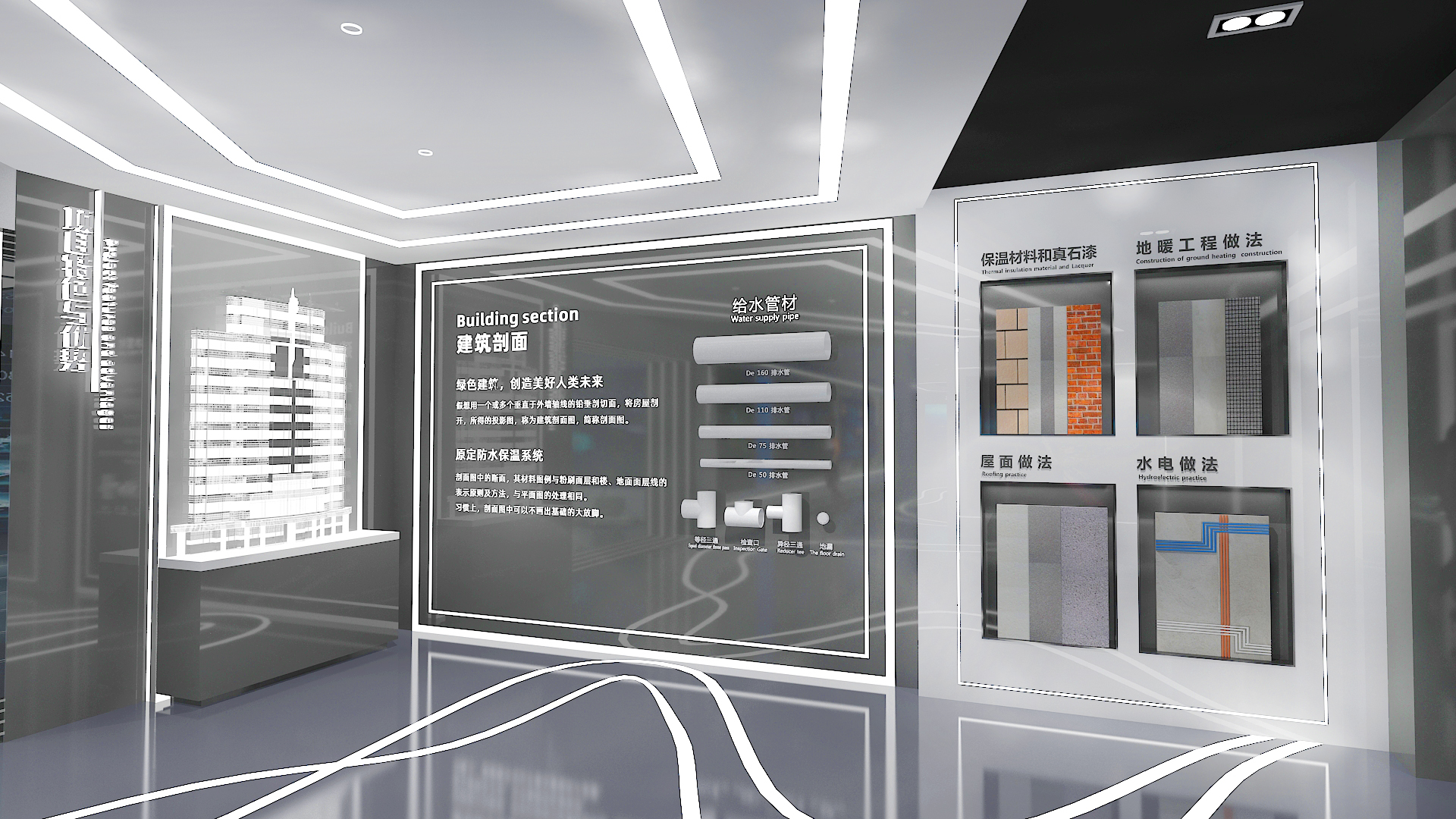 所以在展厅的设计施工过程中,一定要依照施工图纸的尺寸停止施工,在绘制施工图之前要思索到一些要素,做到完好、合理、明晰、圆满,让施工人员、项目经理、客户都称心,力图细致、圆满的展现给客户,轻松高兴的协作就告一段落。