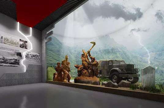 在抗战纪念馆设计中,以观众感官传达为核心,对整个场馆空间进行系统的策划设计。如在序厅中,通常会打造巨型的浮雕墙作品,重现与日军展开了殊死搏斗的进军场景,充分展示了中国军队的英勇抗 敌的英雄气概和舍生忘死的爱国精神。在复原战争景上,通过幻影成像技术、虚拟现实技术,完美地将实景造型和虚拟影像结合在一起,可以复原当时抗战场景,把虚拟的影像投射到这个场景中,让历史重现。