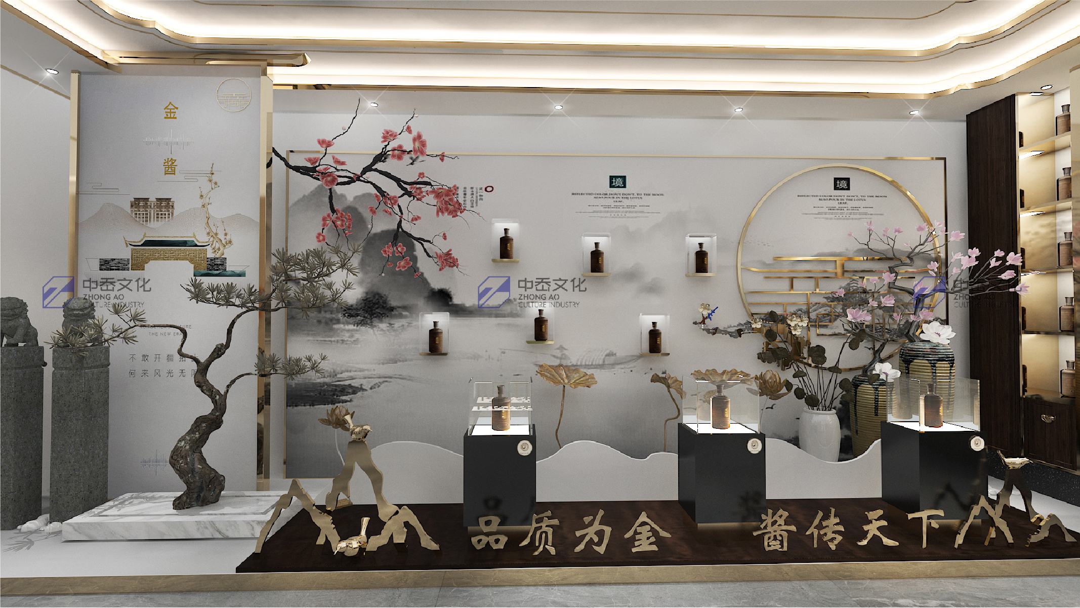 体验馆的设计以追寻酱酒文化与产品品牌价值为出发点,在设计中寻找文化、环境和人的依存与平衡,匠心独运地立足于“传承”,着力于“创新”,用场景化与东方艺术进行演绎,形成了一个人文风尚与东方艺术兼具的创新型展示互动体验空间设计。