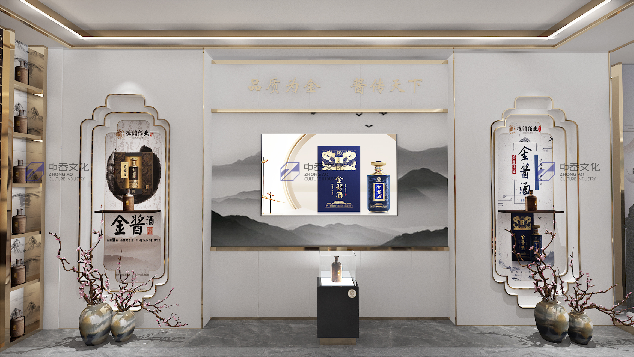 金酱体验馆是打造国内一流的同类企业体验展示空间的精品典范之作,是打造酱酒文化体验馆新名片。体验馆是集“产品展示、文化宣导、品鉴体验”于一体的综合体验馆,树立了金酱酒的品牌价值。