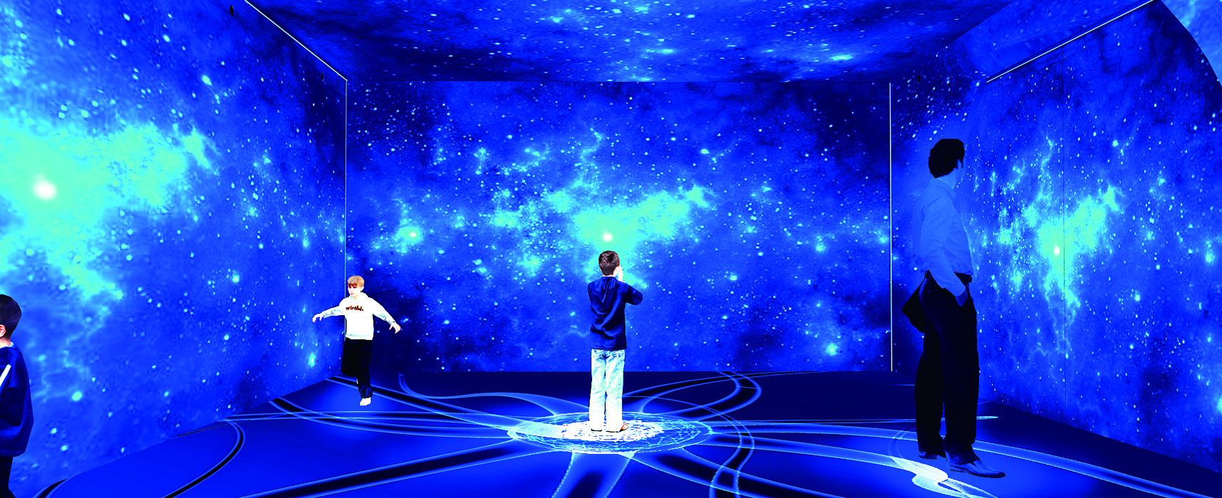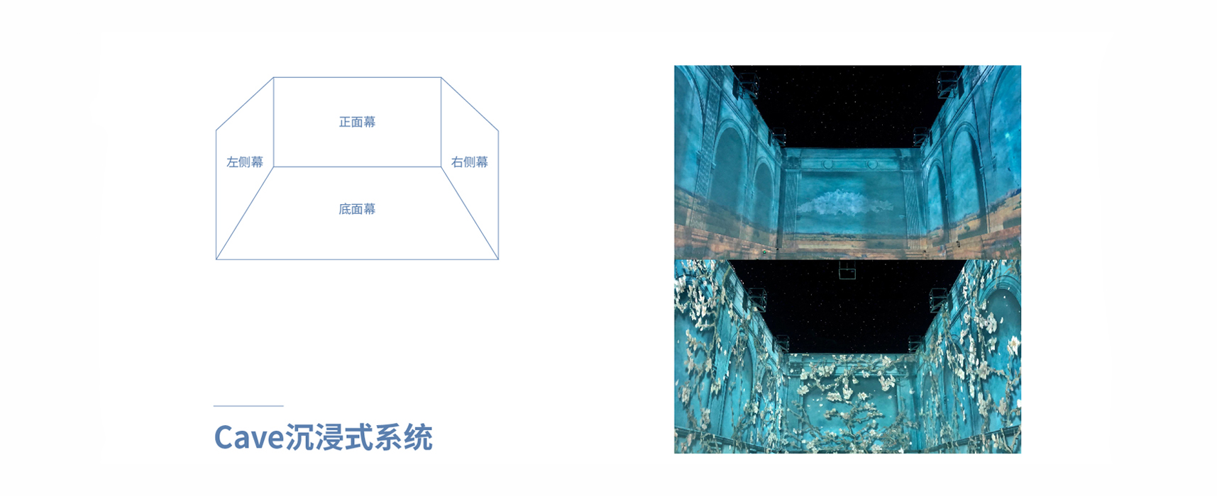 由多个投影墙组成的高度沉浸的虚拟演示环境,该参与者获得一种身临其境的三维立体视听影像和交互感受用身体探索城市的时代变迁。